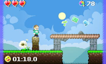 The character who is played as ends on fighting his allergies within a VR simulation, made by his university friends. Between stages, the player can choose between subjects that give different upgrades.